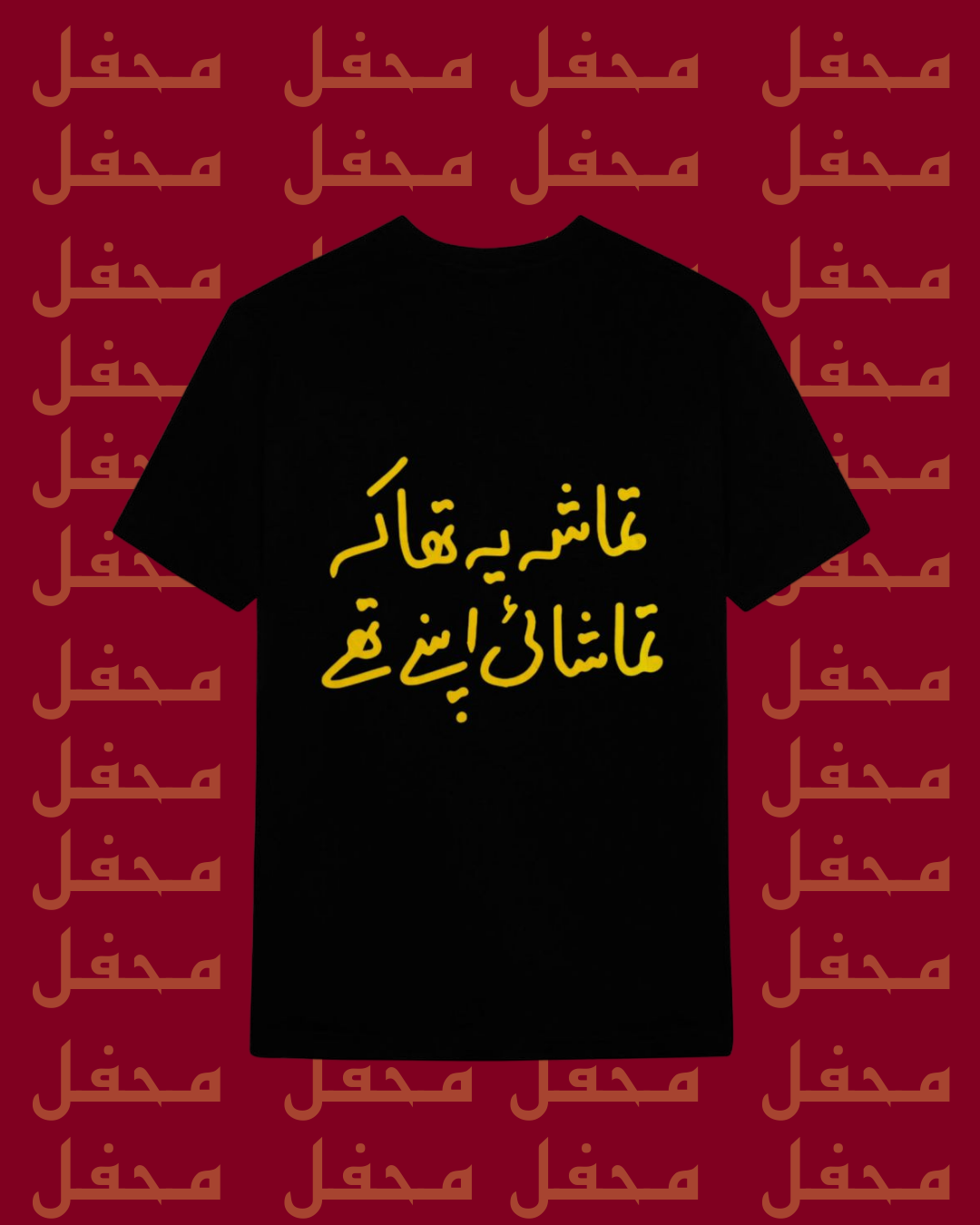 "Tamasha by Mehfil" — more than just a shirt, it’s a scene. This design reflects the noise, the crowd, and the grand performance of life where everyone plays their part.