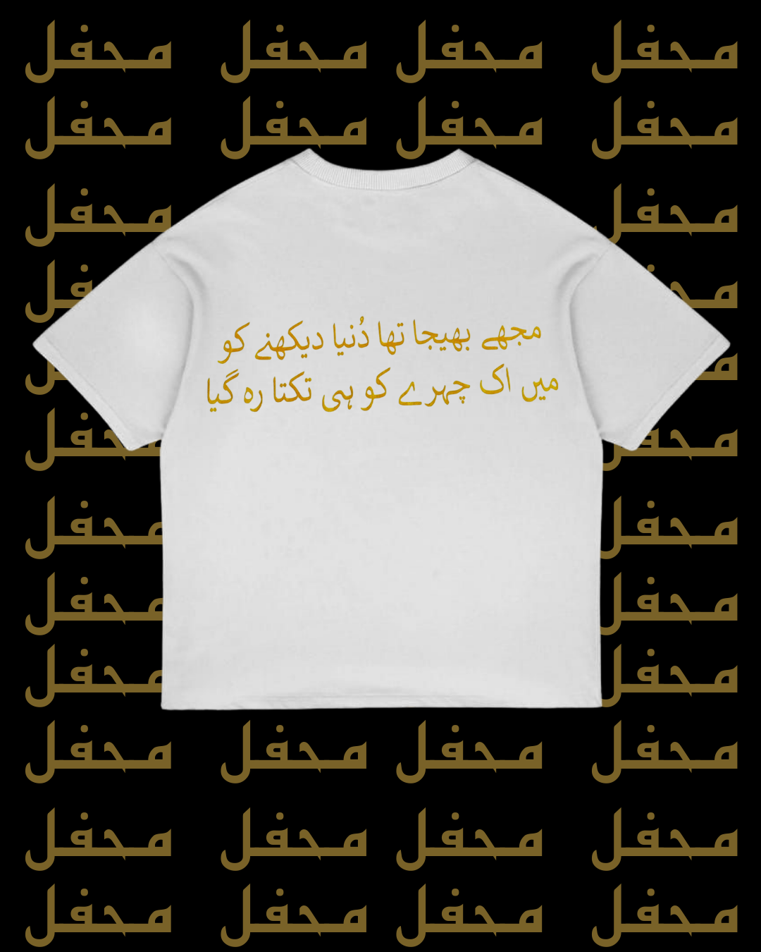 چہرہ by Mehfil" — a design that reflects identity, expression, and the untold stories written on every face. Subtle yet striking, this tee is for those who believe their presence speaks louder than words.